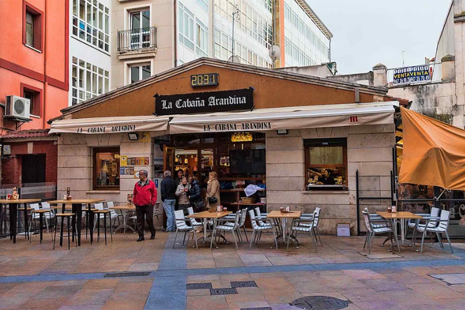 La Cabaña Arandina, local de curiosa e indefinible ambientación, que tiene en la abundante luz solar que se filtra por sus cristaleras y el tragaluz y la lámpara central diseñada en base a multitud de lamparillas los aspectos más destacados de la misma. Sesenta tapas diferentes elaboradas en el momento; revuelto de ajetes; degustación de ventresca; salpicón de marisco; chipirones en su tinta; ensalada de pimientos, cogollos, salmón y espárragos o pulpo “La Cabaña” son algunas de sus “informales” especialidades.